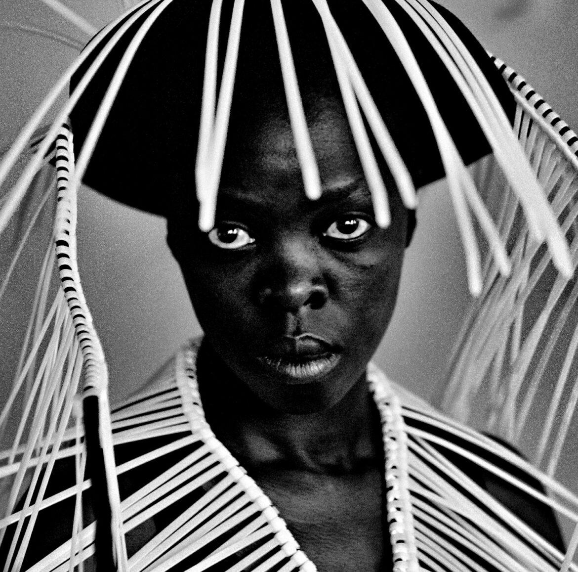 Tornando agli autoritratti, ciascuno racconta una storia precisa, è un riferimento a esperienze personali o una riflessione su un contesto sociale e storico più ampio. Oggetti di uso comune, ripresi in maniera fortemente simbolica, sono posti in un dialogo serrato con il suo corpo trasfigurandolo, raccontando “altro” allo spettatore, costringendolo ad andare oltre il primo livello di lettura dello scatto. Nell’immagine che pubblichiamo, per esempio, il vestito-installazione indossato da Muholi è fatto con le fascette che la polizia sudafricana usa per immobilizzare chi delinque.