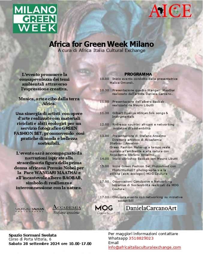 Si terrà domani, 28 settembre, presso Palazzo Sormani, dalle ore 10:00 alle 17:00, l’evento AFRICA FOR MILANO GREENWEEK, una giornata dedicata alla sostenibilità, all’arte e alla cultura africana, con un focus sull’ambiente. L’evento, che si inserisce nell’ambito delle celebrazioni per la Milano Greenweek, avrà come protagonisti simboli importanti per la cultura africana e per il tema ambientale.