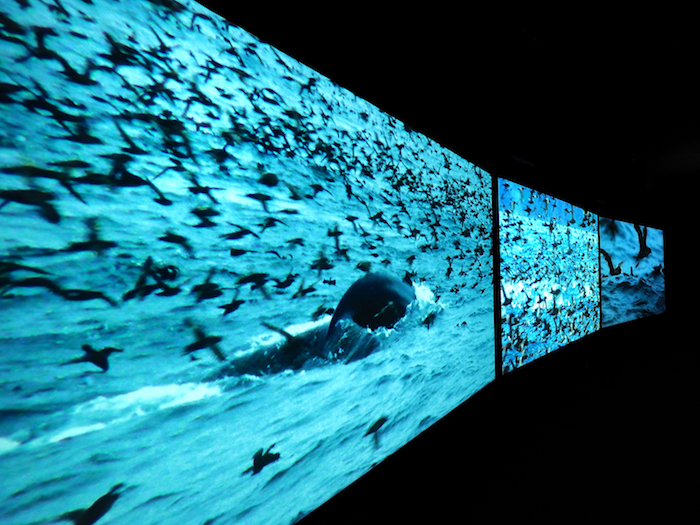 Questo è evidente, per esempio, nel progetto The Mapping Journey dell’artista marocchina Bouchra Khalili: una installazione video che raccoglie le storie di uomini e donne che hanno attraversato i continenti, cercando un varco nella fortezza Europa. O nel film Vertigo Sea dell’angloghanese John Akomfrah (foto), poetica riflessione sul mare e il suo ruolo nella storia della schiavitù, della migrazione e della guerra. Lo avevamo già apprezzato alla Biennale di Venezia 2015, ma il contesto milanese gli conferisce uno spessore ancora maggiore.