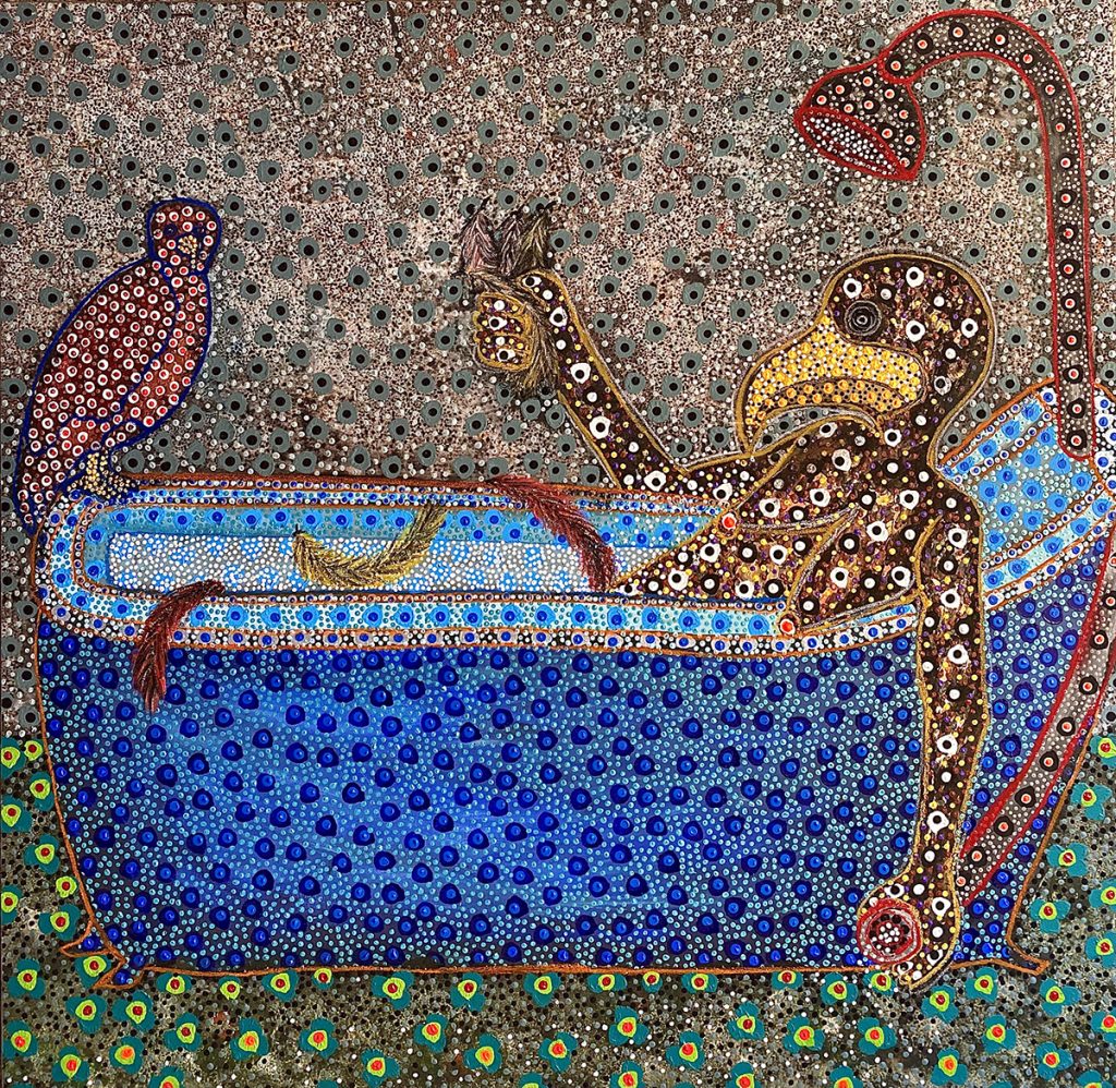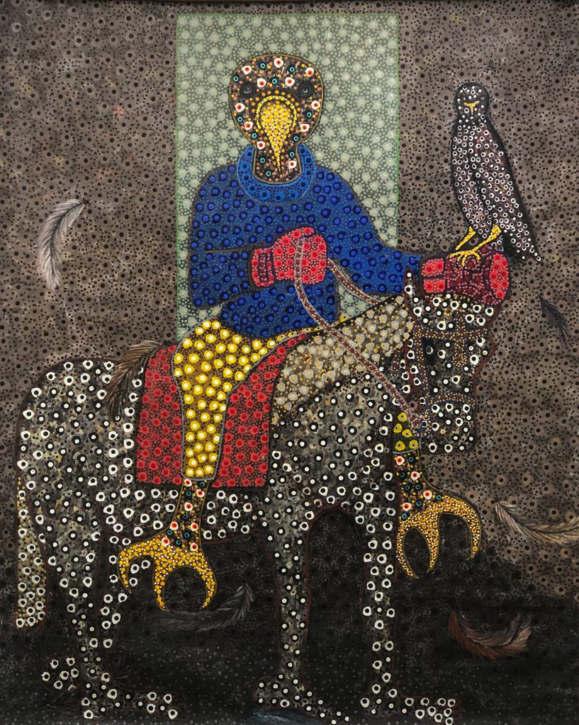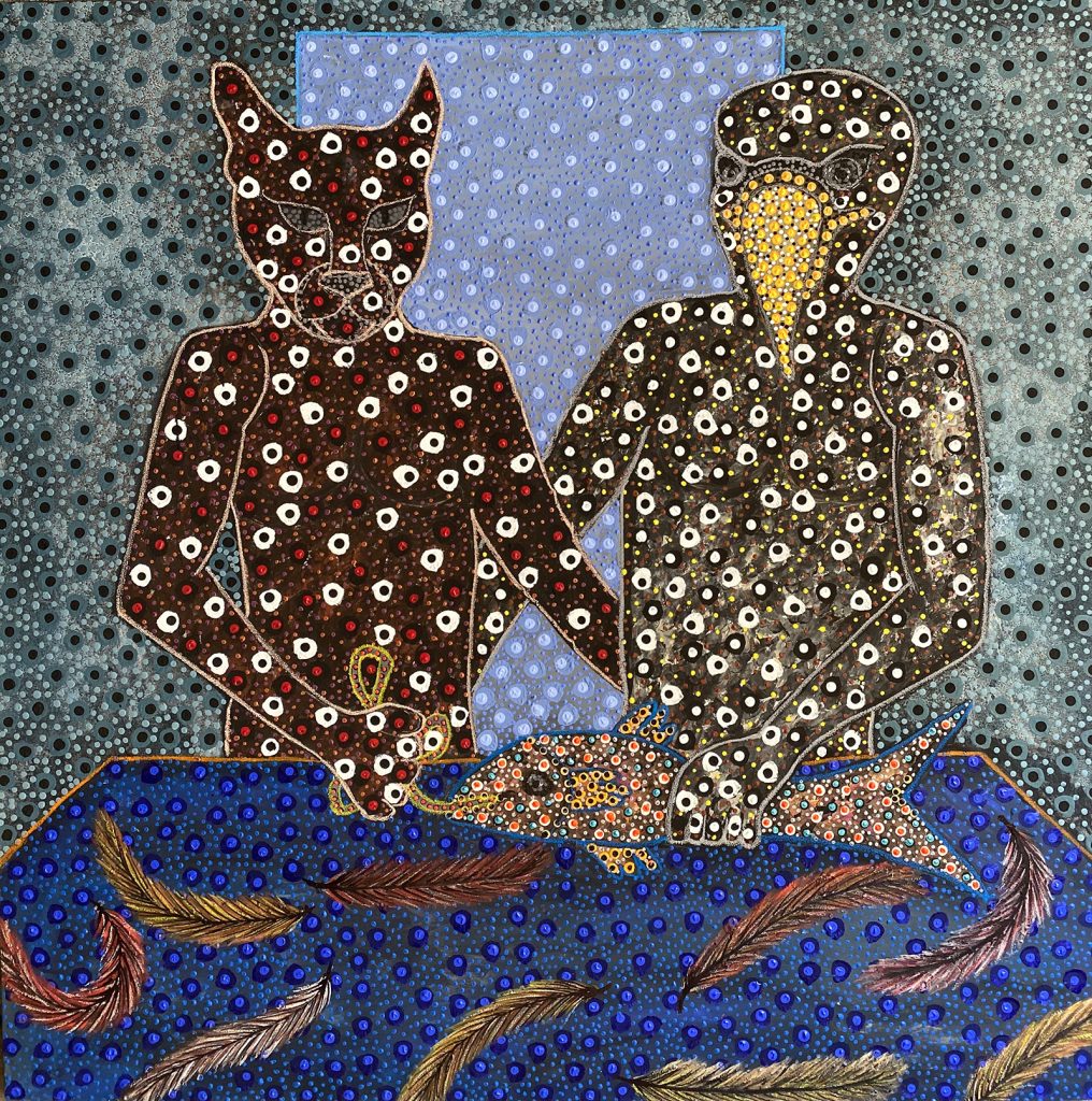 Ousmane Niang, classe 1989, originario di Tambacounda, esamina la relazione tra il dominante e il dominato e la mette in scena utilizzando figure di animali antropomorfi e selvatici. “Gli animali che si umanizzano: sono quelli dominanti. Sono l’incarnazione del potere. Gli animali che rimangono animali sono quelli che vengono dominatiā, spiega.