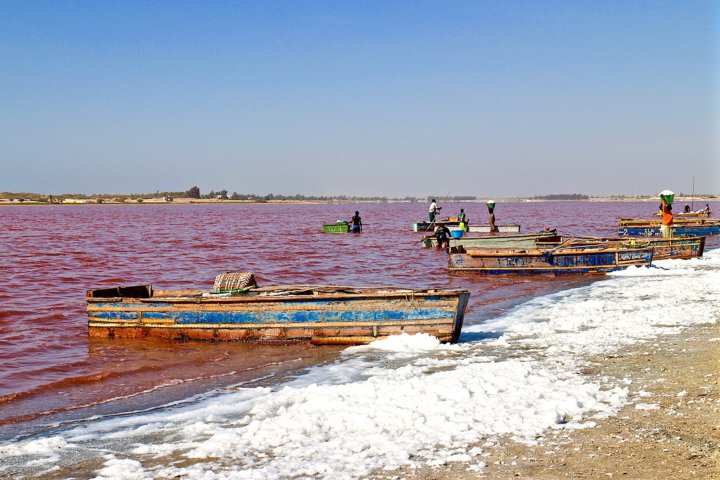 Un altro gioiello del Senegal è il Lago Rosa. Chiamato lago Retba o lac Rose, è collocato a nord est di Dakar. Il nome deriva dalle sue acque decisamente di colore rosa a causa delle alghe che lo popolano e che producono un pigmento rosso.