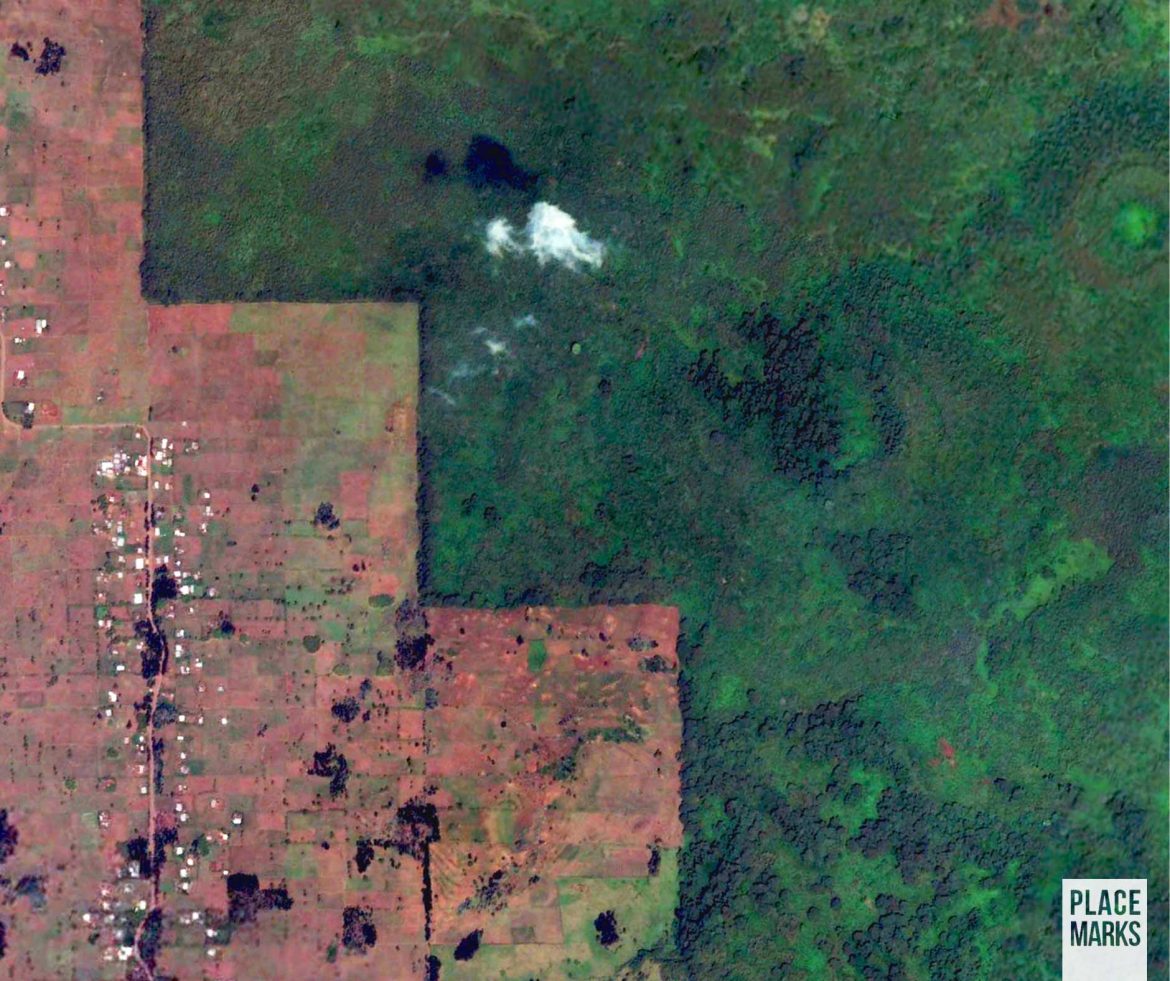 Porzioni di foresta pluviale distrutte per fare posto a coltivazioni alle pendici del vulcano Sabinyo, al confine fra Ruanda e RD Congo, un’area nota per essere l’habitat naturale dei gorilla di montagna. La foresta del bacino del fiume Congo è la seconda più estesa al mondo, preceduta solo dalla foresta Amazzonica. Si stima che ogni anno nel continente africano vengano distrutti fino a 40.000 km quadrati di foresta per fare posto all’espansione urbana, all’agricoltura di sussistenza o a grandi piantagioni monocoltura.