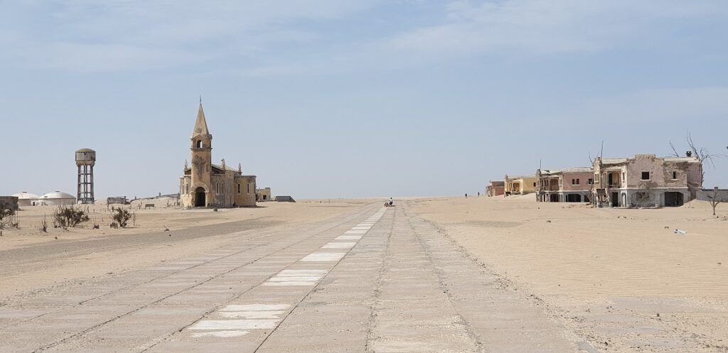 Dalle acque dell’oceano, avvolta nella foschia, affiora la punta di un campanile. Sembra un’illusione ottica. Forse uno scherzo della luce solare che si riverbera sulle onde. A mano a mano che ci si avvicina con la barca, si materializza un’intera città sospesa nel nulla. È il villaggio fantasma di São Martinho dos Tigres, un luogo incredibile, enigmatico, tra i più inaccessibili dell’Africa.