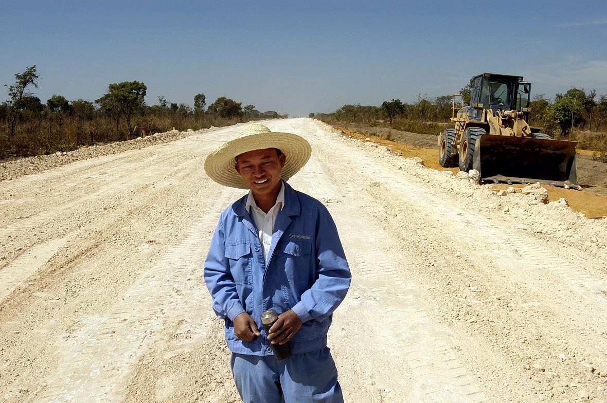 Un operaio cinese durante l’apertura di una strada nella provincia angolana di Moxico. Pechino si è aggiudicata (in cambio di minerali e petrolio) gran parte dei cantieri delle grandi opere africane, grazie alle quali conta di far viaggiare in futuro le sue merci – Foto di J.B. Russell / Panos / Luz