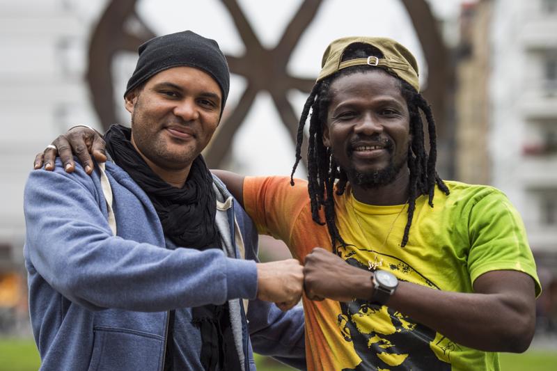 Due artisti e attivisti del Burkina Faso: il cantante hip-hop Smockey (al secolo, Serge Bambara) e il musicista reggae Sams’K Le Jah (Karim Sama): le loro canzoni sono le colonna sonora della manifestazioni pro-democrazia. – Foto di John Macdougall