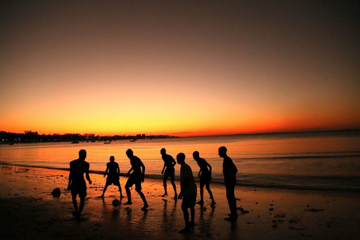 Si gioca al tramonto sulla spiaggia di Pemba, capoluogo della provincia di Cabo Delgado: la guerra sembra lontana. – Foto di Marco Trovato