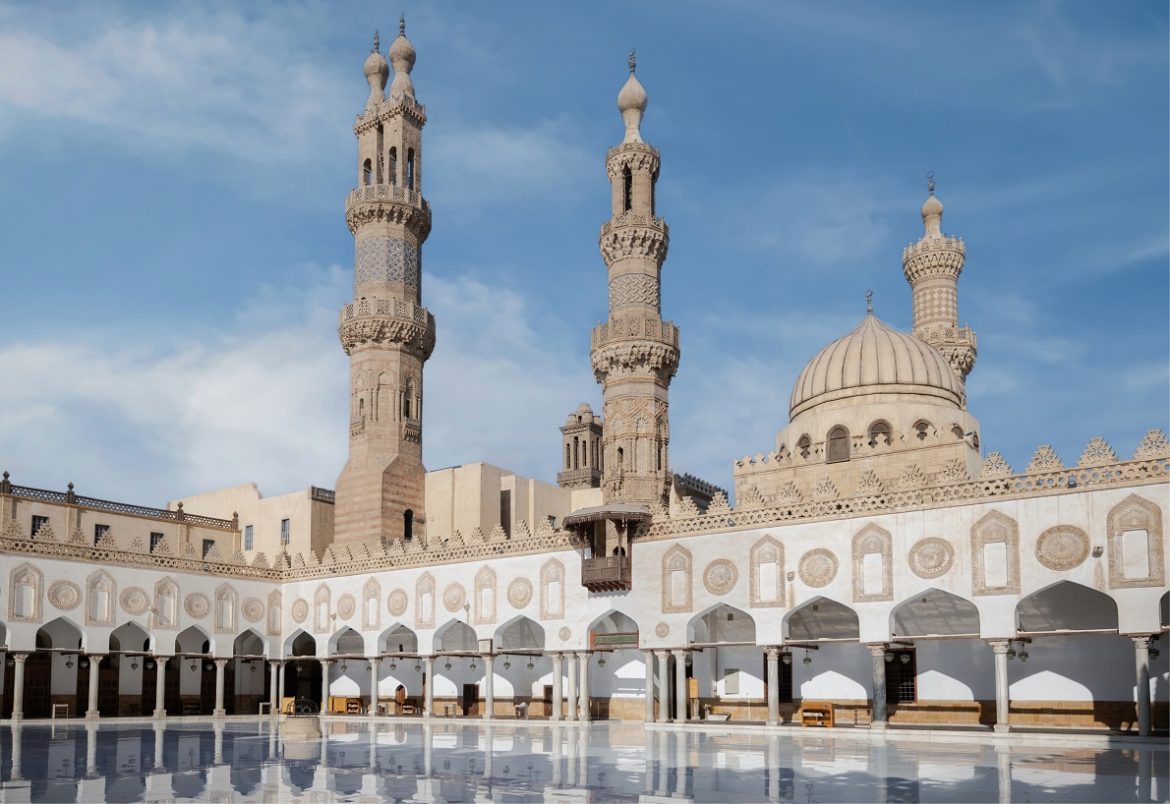 Il cortile della Moschea di Al-Azhar, centro nevralgico della cultura e dottrina islamica, si distingue per l’eleganza e la raffinatezza dei suoi elementi architettonici.
