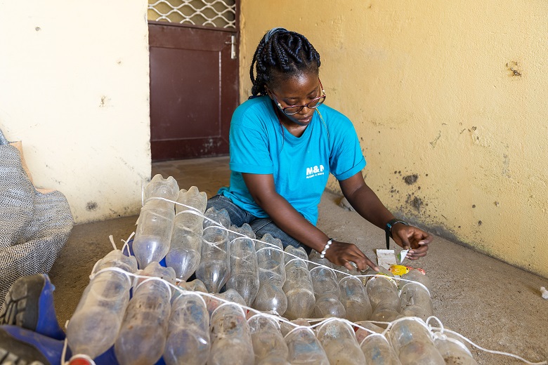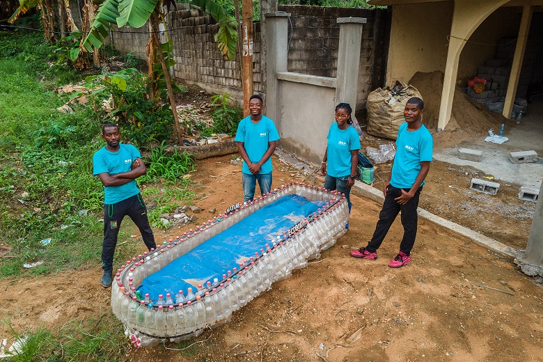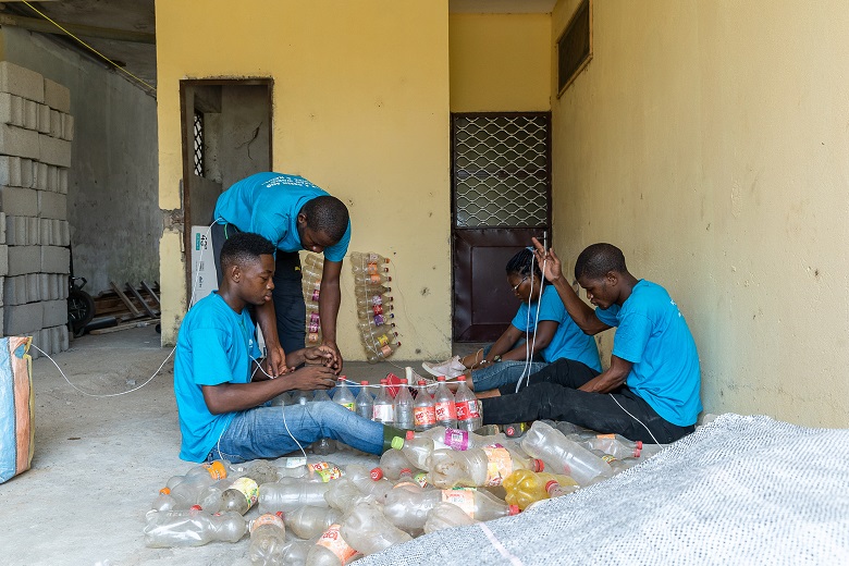 Nel 2017 il ragazzo coinvolse nell’attività amici ed ex compagni di studi. Nacque così l’organizzazione non profit Madiba & Nature, impegnata su vari fronti: ricerca e innovazione nel campo del riciclo della plastica, sensibilizzazione e formazione, ecoturismo, salvaguardia ambientale… «Andiamo nelle scuole a spiegare agli studenti l’importanza dello smaltimento consapevole dei rifiuti. Portiamo oggetti costruiti con le bottiglie per far capire loro quante cose utili si possono fare con la “spazzatura”», spiega Rogei Otyaka, studente di ingegneria che sta facendo lo stage alla Madiba. Il team ha inoltre installato, in diversi quartieri di Douala, grandi contenitori di forma cubica realizzati sempre con bottiglie, dove le persone possono gettare la plastica vecchia.