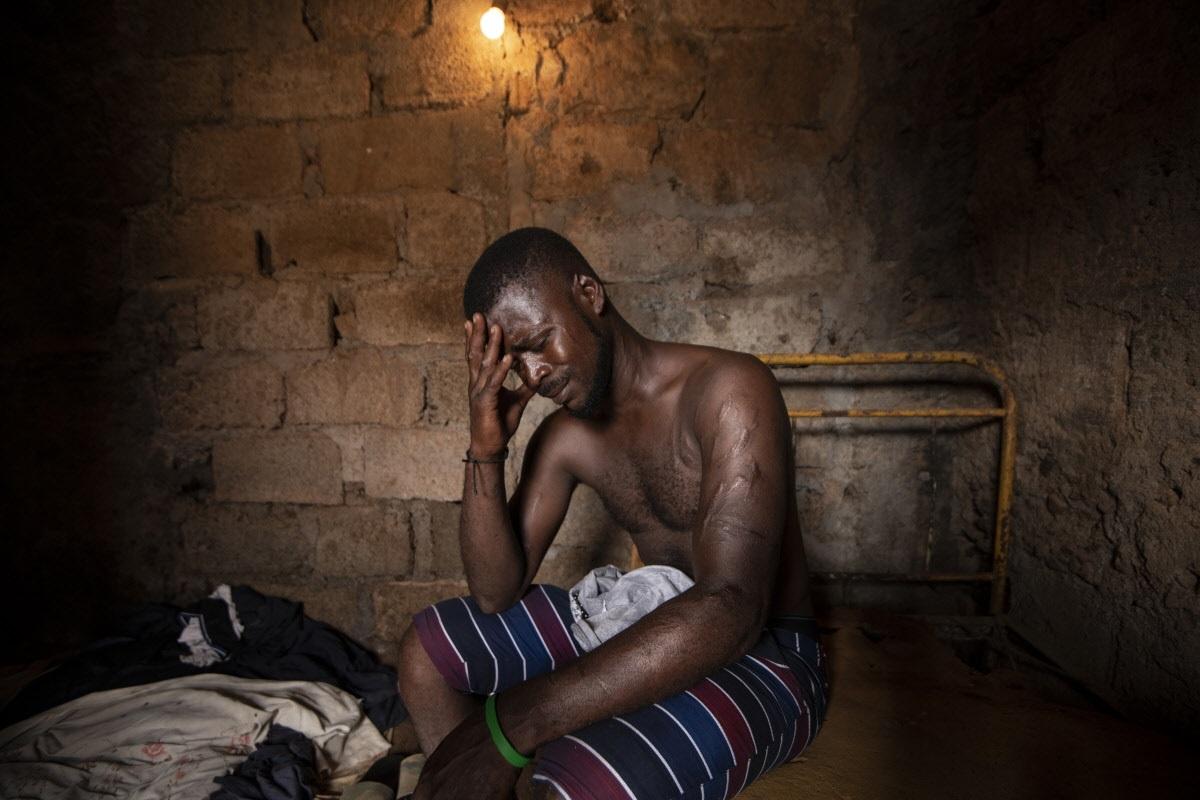 Nathaniel Tavares, 31 anni, soffre dei sintomi dell’astinenza da crack mentre attende lo spacciatore nel quartiere di Ponta d’Água, a Praia, capitale di Capo Verde. – Foto di Simon Townsley / Panos Pictures