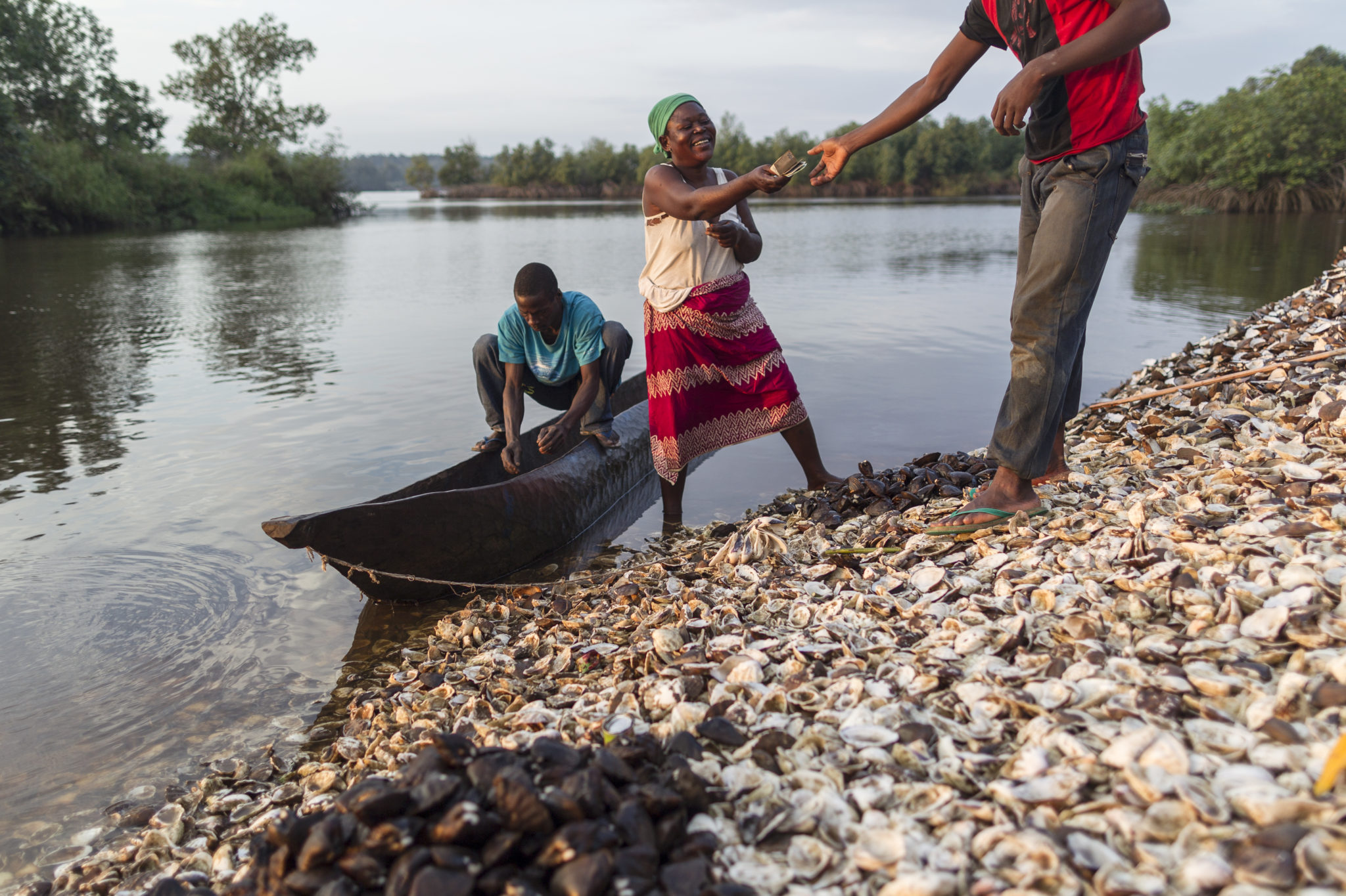 La raccolta dei molluschi è un’attività tramandata da molte generazioni nei villaggi congolesi del Parco Marino delle Mangrovie, là dove il fiume Congo incontra l’Atlantico.