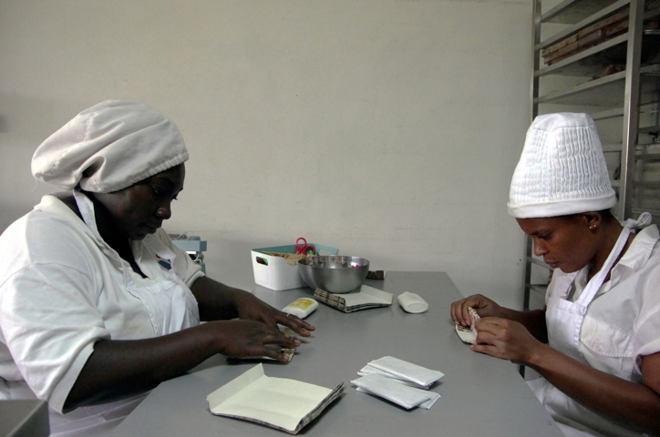 Abidjan: artigiane nel laboratorio di Mon Choco, piccola fabbrica della Costa d’Avorio il cui cioccolato ha la particolarità di essere prodotto esclusivamente con cacao crudo, ovvero non tostato. Senza aggiunta di additivi e conservanti.