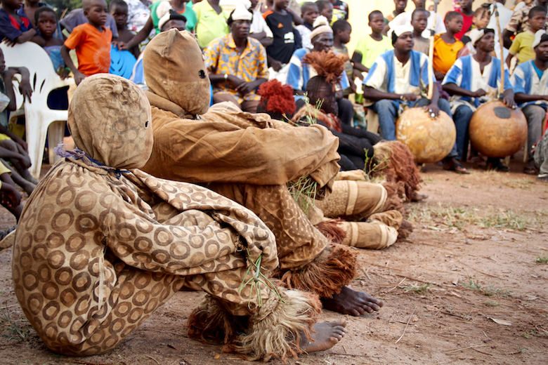 Per i Senufo, bambini e bambine non sono esseri umani completi: è l’iniziazione a dar loro un genere e un posto nella comunità. Mentre vede polli decapitati con asce di pietra (la stessa pena per chi divulgasse i segreti dell’iniziazione), al bambino viene detto che sarà “ingoiato” dagli spiriti non appena sarà entrato nella foresta, là dove le scarificazioni che subirà sulla schiena saranno definite “unghiate e morsi” degli spiriti stessi. Senza un lamento, gli iniziandi dormiranno nudi, coperti solo di stracci bagnati oppure all’aperto, se dovesse piovere; sempre che riescano a dormire per l’incessante suono dei tamburi e i raid violenti delle maschere-spirito.