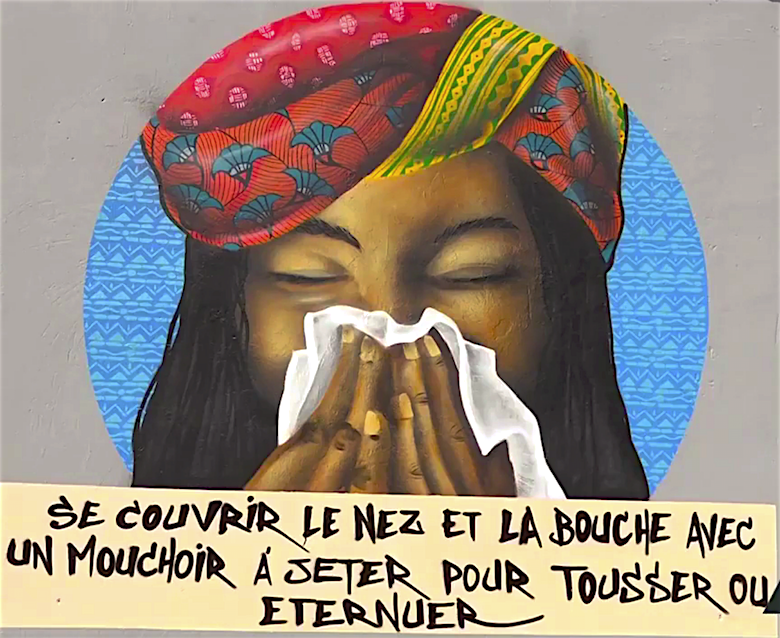 «Abbiamo lavorato in quattro su questo murales, in collaborazione con la direzione dell’Università Cheikh Anta Diop di Dakar – dice uno degli autori –. Fa parte di una campagna di prevenzione. Noi abbiamo usato la nostra arte per incoraggiare le persone a rispettare le misure igieniche, a rimanere a casa».