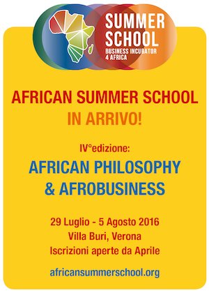 Ultimi giorni per iscriversi all’African Summer School, la settimana di approfondimenti a Villa Buri, Verona, sul tema “African Philosophy & Afrobusiness”. Dal 29 luglio al 5 agosto.
