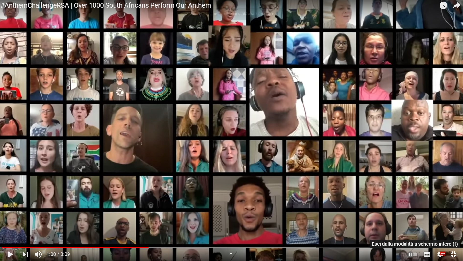 Qui il brano è interpretato da più di mille cittadini sudafricani che hanno accettato l’invito di AnthemChallengeRSA di cantare virtualmente assieme, essendo impossibilitati a farlo dal vivo a causa delle restrizioni legate alla pandemia (il Sudafrica è la nazione africana più colpita dal Coronavirus). Un inno pieno di gioia e di luce: Dio benedica l’Africa!