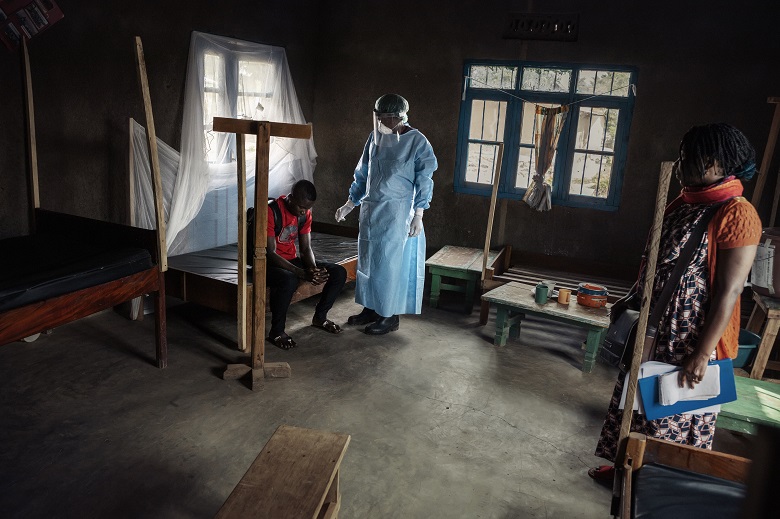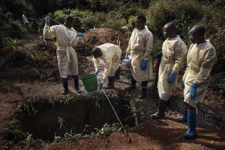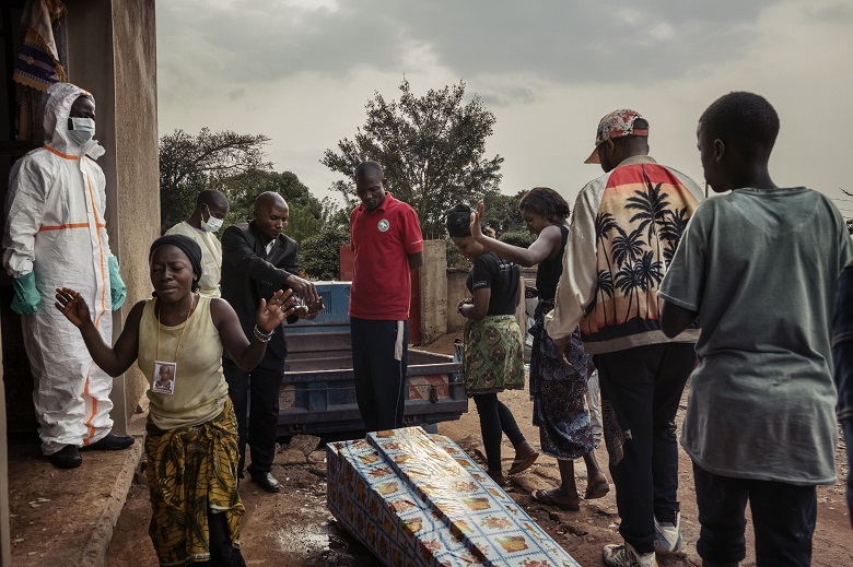 La squadra di intervento, scortata da un pick-up dell’esercito, si reca nella periferia della città dove viveva Kambale Mandefu, l’uomo di 29 anni da poco spirato. I militari creano un cordone di sicurezza intorno all’abitazione mentre uomini e donne della protezione civile indossano tute, maschere, occhiali, guanti, e dopo la vestizione aspergono la casa con una soluzione ad alta concentrazione di cloro; poi bruciano materassi e cuscini e solo alla fine trasferiscono il corpo sul fuoristrada per recarsi all’obitorio. Tutt’intorno i vicini assistono in un assordante e spaventoso silenzio, rotto solo dal pianto disperato di una donna.