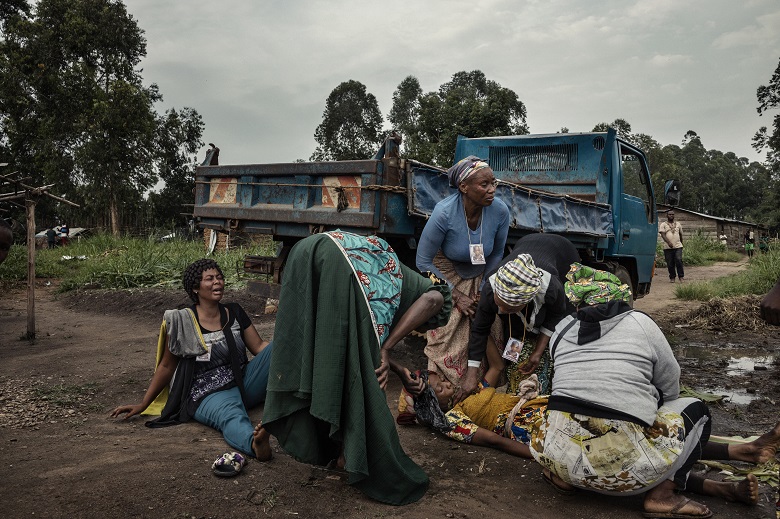 Il dolore è la sola certezza e l’unica costante a Beni, dove i funerali scandiscono il tempo come un metronomo della sofferenza. È pomeriggio, un cielo saturo di nuvole gonfie di pioggia minaccia un imminente temporale e intanto nella sede della commissione di pronto intervento arriva la segnalazione di un decesso per ebola nel quartiere di Paida. Il responsabile della protezione civile Jean-Paul Kapitula spiega: «Noi abbiamo un centralino che continua a ricevere chiamate. Tutte le segnalazioni di casi sospetti o morti per l’infezione arrivano nella nostra sede e noi inviamo subito un’équipe sul posto, a prelevare il defunto». Nel caso di morte per ebola, il corpo viene prelevato dal personale sanitario e non viene più restituito alla famiglia a motivo dell’alto rischio di contagio; ai parenti è concesso, al momento del funerale, solo un ultimo saluto a un anonimo sacco bianco.
