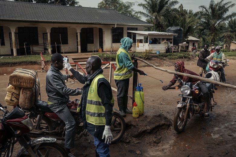 «Ebola esiste, non stancatevi di lavarvi le mani e di proteggervi… Ebola esiste, non stancatevi di lavarvi le mani e di proteggervi». Da un piccolo altoparlante, ininterrottamente, una voce tetra e metallica continua a diffondere appelli sull’esistenza del virus più letale al mondo e intanto decine di persone attendono di farsi misurare la febbre all’ingresso di Beni, epicentro dell’epidemia di ebola. Operatori sanitari e militari delle forze armate della Repubblica democratica del Congo presidiano il posto di blocco, indossano maschere e guanti, obbligano chiunque transiti a registrarsi: nome e cognome, luogo di provenienza, temperatura corporea.