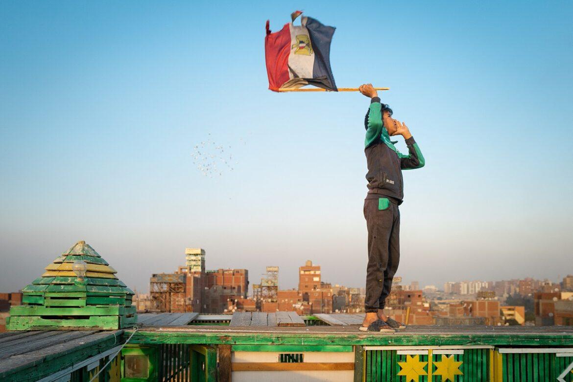 Egitto, un giovane richiama i piccioni sulla terrazza della casa dove alleva i volatili. – Foto di Aric Botbol/ Hans Lucas/Afp