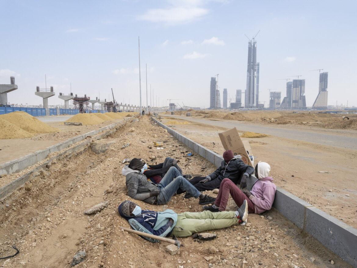 Lavoratori immigrati del Sud Sudan in pausa in un cantiere del Central Business District nella nuova capitale amministrativa dell’Egitto. – Foto di Nick Hannes / Panos Pictures