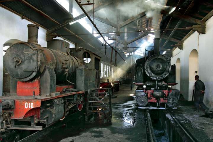 Vecchie locomotive in un’officina nella capitale dell’Eritrea. Dopo l’indipendenza, il governo eritreo ha voluto ripristinare binari, ponti e convogli della avveniristica ferrovia costruita dagli italiani, durante il periodo coloniale, tra il porto di Massaua e la città di Asmara.