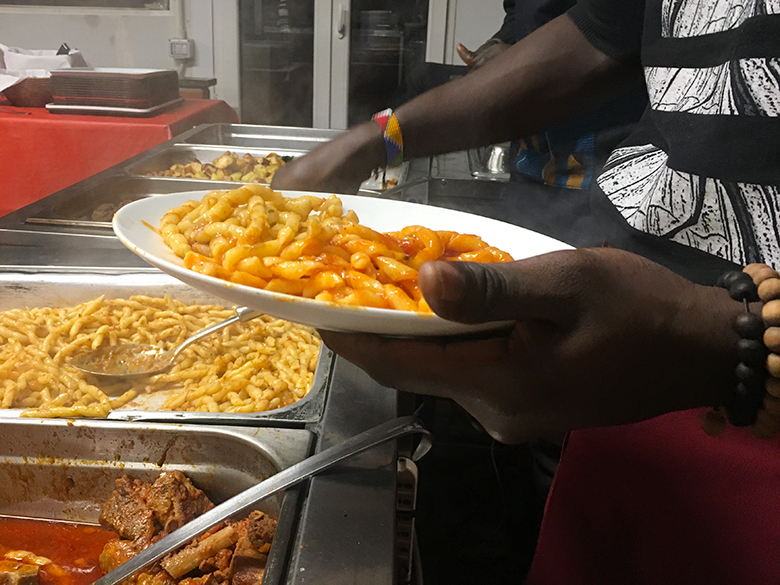 Tra i piatti proposti nel mese scorso, si annoverano specialità tradizionali senegalesi o squisite sperimentazioni culinarie che sposano ingredienti e sapori italiani e senegalesi, come il Modlor (miglio, cipolla, aglio, farina d’arachidi, tonno, karkadè, merluzzo, olio d’oliva, formaggio grana grattugiato, menta, sale, pepe, peperoncino), o la paella. In queste cene da asporto preparate nella cucina del C.I.Q., non solo il Senegal rappresenterà l’Africa con le sue ricette, né gli ingredienti e i piatti africani saranno gli unici protagonisti dell’incontro con le pietanze italiane: «abbiamo l’idea di programmare una cena ivoriana, mentre in tanti ci chiedono l’ossobuco…l’idea alla base è quella di parlare di saperi e sapori cercando di esplorare il mondo in cucina», precisa Gueye.