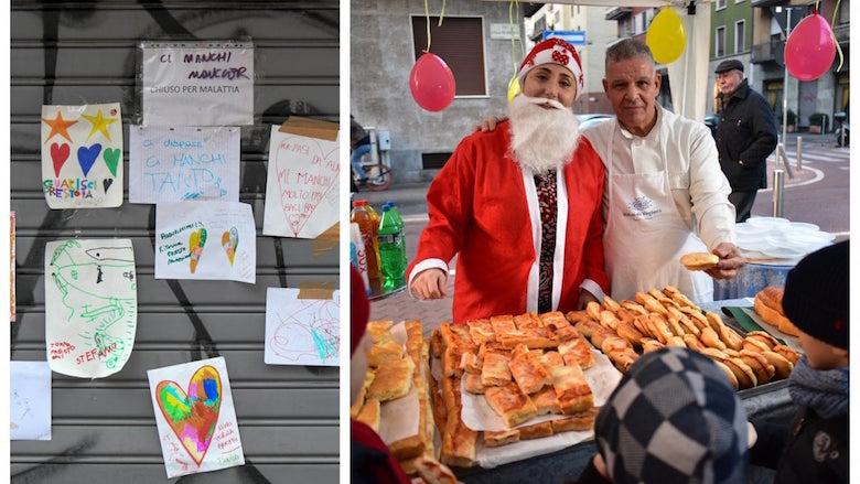 Sulla saracinesca usata come bacheca sono stati appesi i saluti dei tanti dipendenti degli uffici vicini alla panetteria, ma soprattutto disegni dei bambini che abitano in zona: Fasi è un gran dispensatore di focaccine ai più piccoli. Guarito e rientrato al lavoro, per ringraziare tutti, Fasi ha organizzato una festa di Natale offrendo pizza e focaccia a chiunque passasse.
