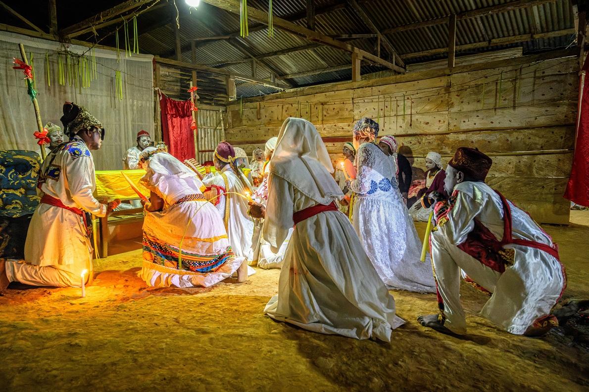 Oltre all’iniziazione, il rito più importante è la ngozé, una “messa” che può durare per tre notti consecutive (nascita, morte, resurrezione). -Foto di Jorge Fernandez/ Alamy/ Foto Stock