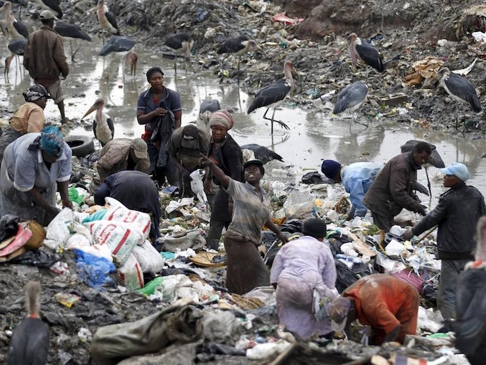 Conakry è una città invasa, assediata dalla spazzatura. Un disastro ecologico! Eppure molti giovani, anche ragazzi e bambini lavorano in discariche pestilenziali costituite letteralmente da montagne di plastica, rifiuti organici, stracci, carrozzine, legni marci, biberon, ciabatte infradito. In mancanza di altro lavoro cercano di recuperare il valore che in quegli oggetti è rimasto. Li ho visti vagare su queste colline di immondizia, spesso a piedi nudi, ormai assuefatti all’odore nauseabondo che emanano. Mi ha colpito una mamma con due bimbi, uno legato sulla schiena e l’altro che l’aiutava a rovistare tra i rifiuti. La mamma era giovanissima e, evidentemente, non aveva perso le speranze in una possibile vita migliore perché aveva mantenuto quel vezzo di farsi bella, o almeno di essere dignitosa: capelli puliti, intrecciati con cura, una collana di perline al collo, un bel sorriso nonostante tutto.