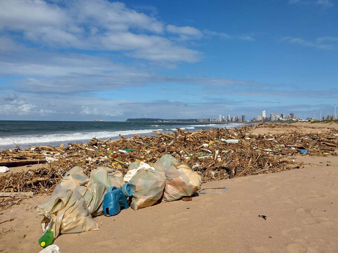 Decine di persone in pettorina gialla e spessi guanti di gomma si aggirano lungo la spiaggia di Durban, nei pressi della foce del fiume Umgeni, là dove solitamente gruppi di surfisti trascorrono i pomeriggi in attesa dell’onda giusta. Il magnidicente stadio alle loro spalle e gli imponenti grattacieli della downtown sembrano lontanissimi, quasi nascosti da enormi cumuli di rifiuti in cui tronchi d’albero levigati dalla furia delle acque si alternano a plastiche di ogni sorta, pezzi di lamiera, carcasse di animali, stracci, addirittura un’autocisterna arrivata da chissà dove.
