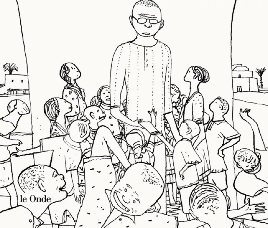 La storia è ambientata in un villaggio africano senza nome e senza strade asfaltate, dove le automobili arrivano solo per sbaglio e i poveri hanno la preghiera come attività prediletta. In questo villaggio ritorna un giovane che, a differenza di altri, ha avuto l’opportunità di studiare e diventare maestro: ritorna con l’intenzione di fare scuola ai bambini. Ma ben presto i suoi piccoli allievi cominciano a sparire. Non è un sortilegio. Il fatto è che a poca distanza ha aperto una fabbrica che trova conveniente far lavorare proprio i bambini. Il maestro decide allora di andarsi a riprendere gli allievi… Un racconto d’autore, illustrato dai Lorenzo Mattotti, che affronta il tema dei diritti dell’infanzia e mette anche i giovani lettori di fronte al conflitto tra l’anelito a un’educazione a lungo termine e l’impellenza del bisogno economico.