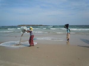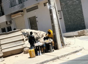Awa ha un fornetto di ferro pieno di cenere, sabbia e noccioline. Smuove le noccioline (gherte thiaf) con un mestolo di ferro bucato, per farle abbrustolire. Vende un pacchetto di noccioline, piccole e gustose, a 25 franchi Cfa: per incassare mezzo euro deve venderne più di 12. Con il vestito largo dello stesso colore del foulard, gli occhi stanchi e un bastoncino di legno che tiene all’angolo della bocca, lavora su quel marciapiede dal primo pomeriggio fino a Timiss, l’ora della preghiera della sera. Awa, come molti altri, fa parte del mondo dell’informale. Nessuna Ninea (partita iva), nessun certificato di camera di commercio, nessuna busta paga. Lei non esiste in nessun archivio, nessun registro, ma con la sua attività, da anni, riesce a portare a casa il riso e lo yaboy, una sardina locale, per tirare avanti un giorno sì e uno no.