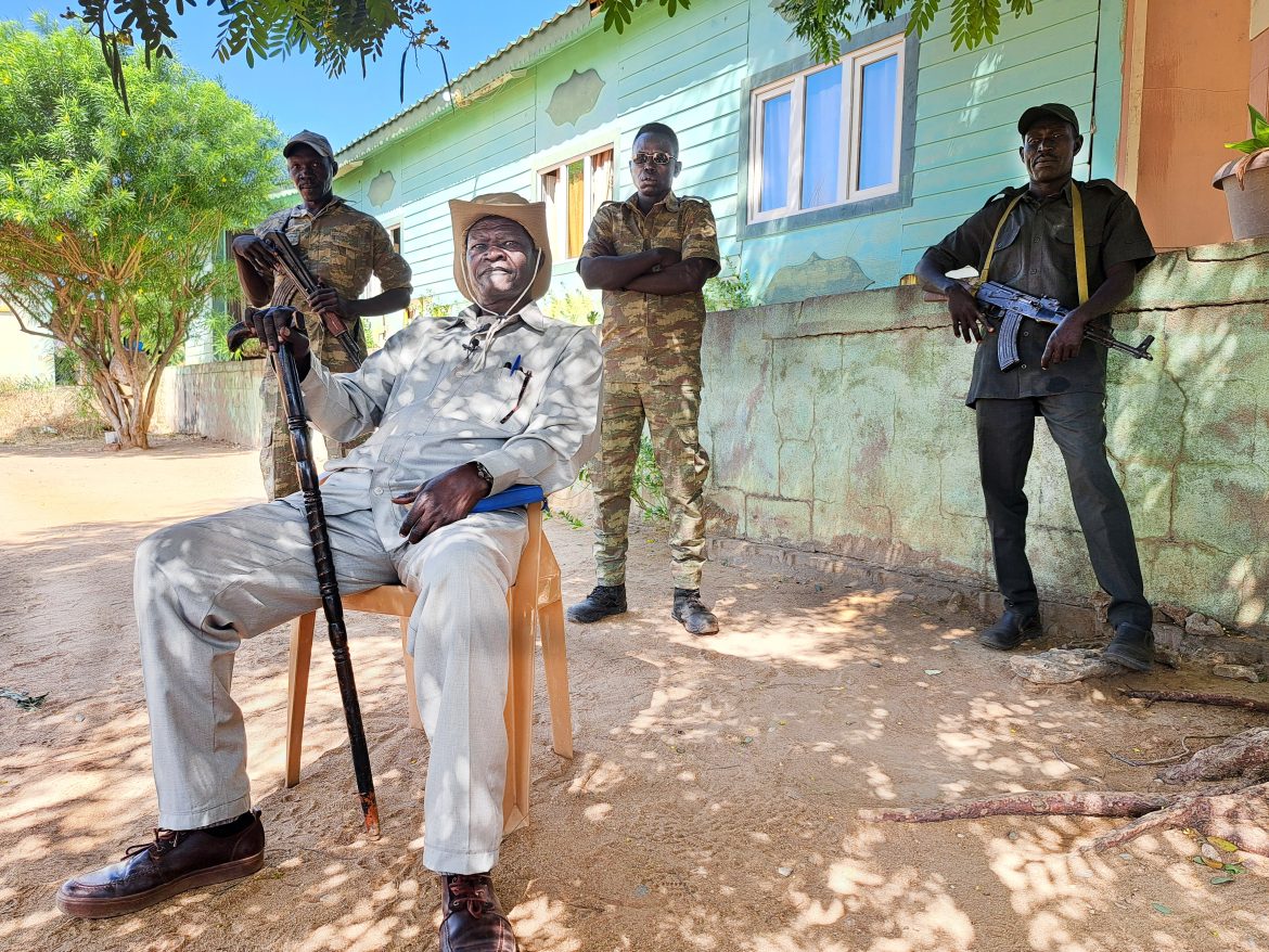 Daoud Isaiah Al-Foul, vicegovernatore dei Monti Nuba, con la sua scorta armata. «Siamo scesi in guerra al fianco delle Forze di supporto rapido per fermare le violenze dell’esercito di Khartoum». Foto di Marco Trovato