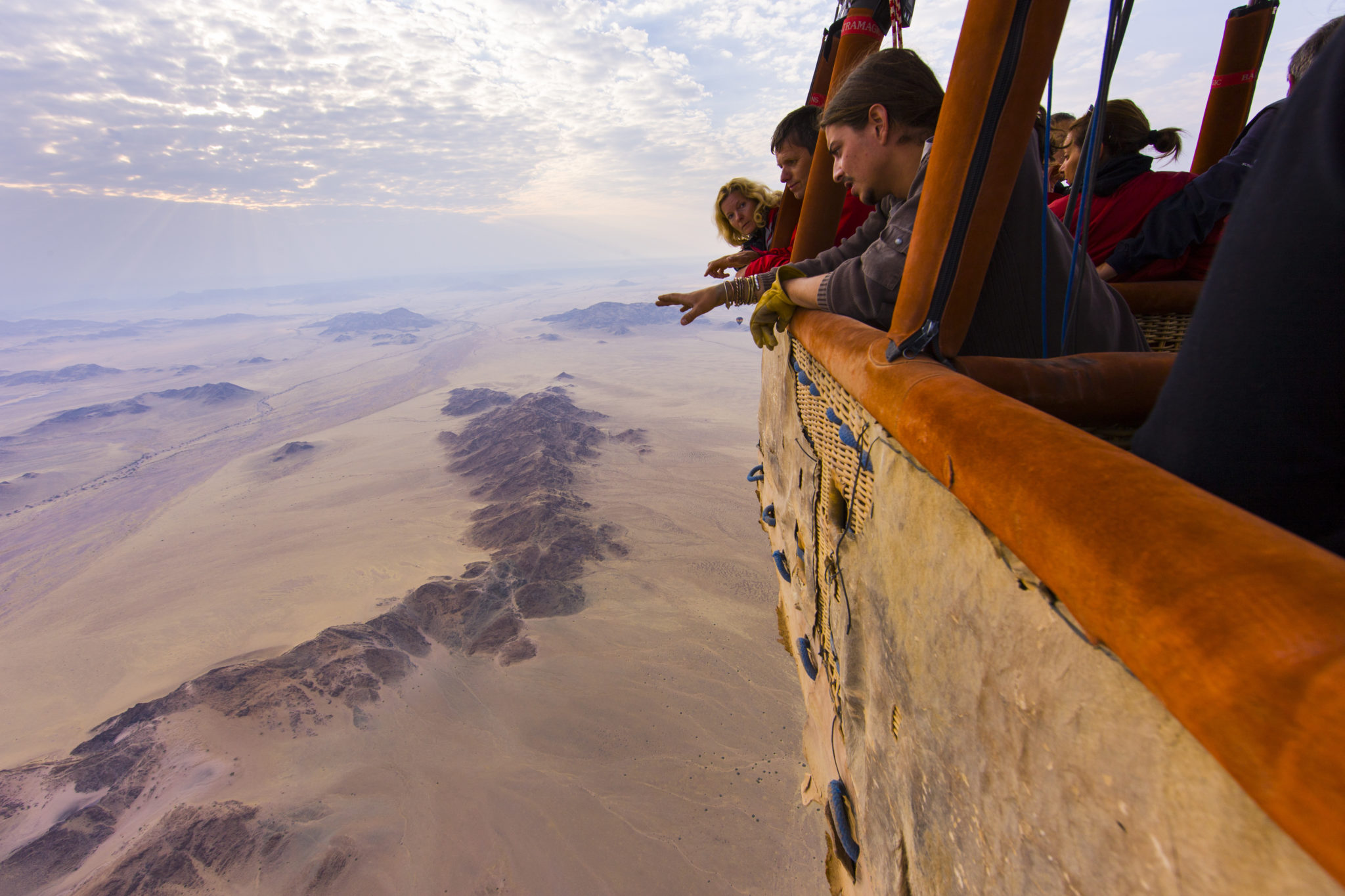 Veduta aerea da una mongolfiera dei rilievi del Namib. – Foto di Juan-Carlos Muñoz
