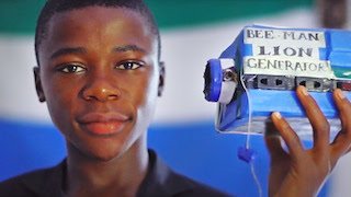 Nella foto, Kelvin Doe, ragazzo di 15 anni della Sierra Leone, che ha realizzato una batteria per illuminare la propria casa, assemblando con il nastro adesivo pezzi di metallo, soda e acidi recuperati in discarica. E poi ha creato un trasmettitore radio che gli ha permesso di diventare il DJ del suo villaggio.