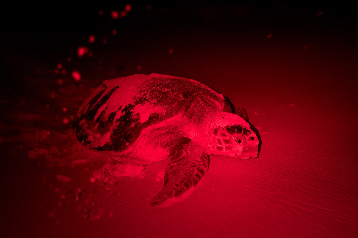 Dopo aver deposto le uova, una tartaruga torna nelle acque oceaniche. – Foto di Luigi Avantaggiato