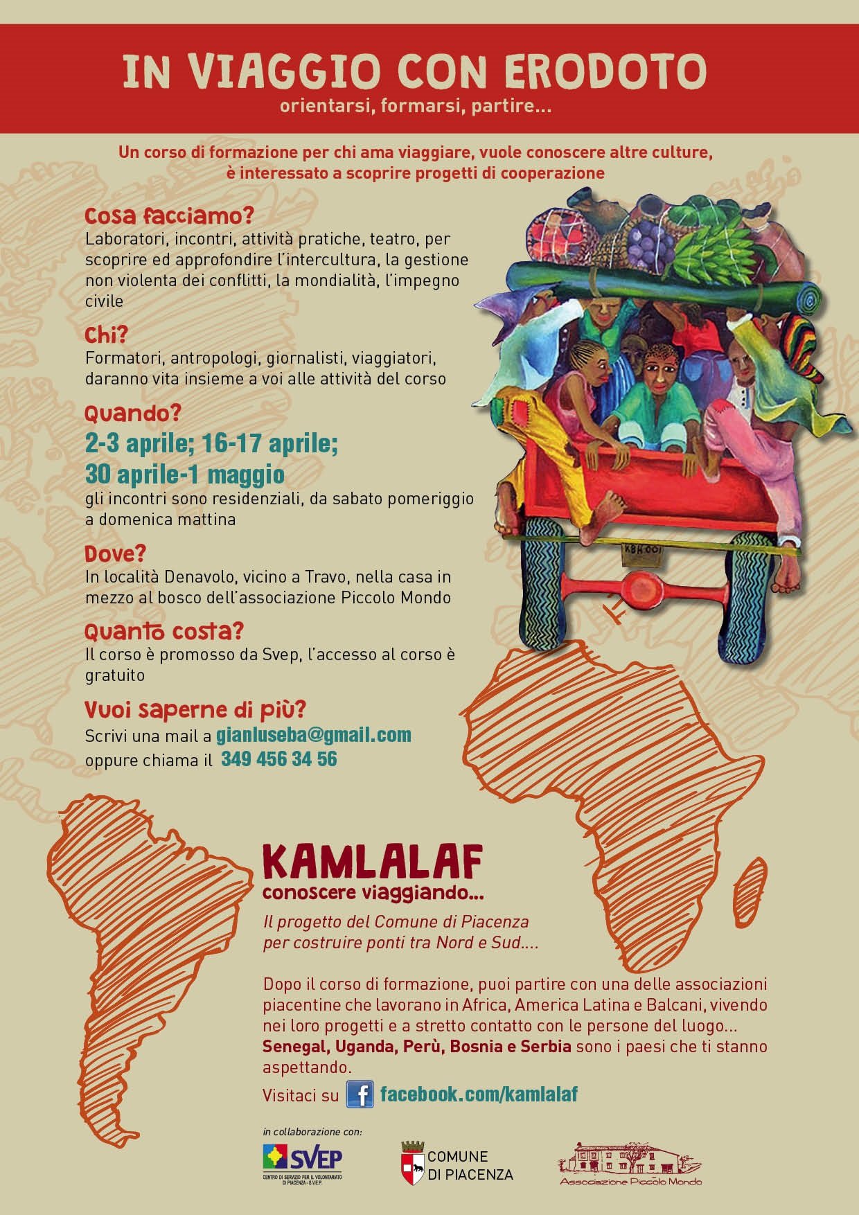 Promosso dallo SVEP (Centro di Servizio per il Volontariato di Piacenza), anche quest’anno il percorso inizia con ‘In viaggio con Erodoto’: tre week end formativi per chi ama viaggiare e vuole conoscere altre culture, oltre che avvicinarsi al mondo della cooperazione. Tutti gli incontri (2-3 aprile, 16-17 aprile, 30 aprile-1 maggio) si terranno presso la casa dell’Associazione Piccolo Mondo, sulle colline piacentine, in località Denavolo (Travo). I fine settimana trascorreranno all’insegna di attività pratiche, tra laboratori, tavole rotonde, letture e teatro.