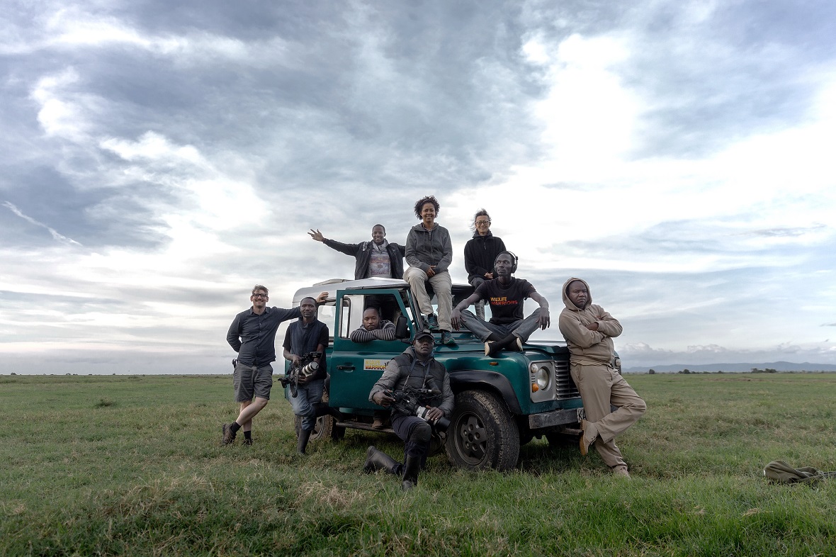 L’ambientalista, studiosa e divulgatrice keniana Paula Kahumbu con la troupe di Wildlife Warriors, pluripremiata serie di documentari naturalistici – Foto di Johann Vorster
