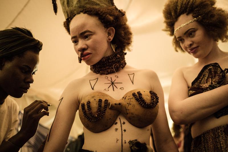 Nel backstage del concorso di bellezza ed eleganza riservato agli albini. I finalisti, suddivisi nelle categorie uomini e donne, erano in trenta e provenivano da Uganda, Tanzania e Kenya. – Foto di Yasuyoshi Chiba / Afp