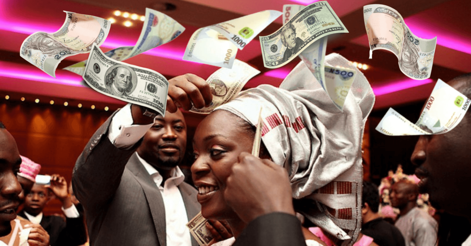 Il gesto tradizionale di lanciare o spargere banconote su chi balla o su una coppia di sposi è chiamato comunemente “money spraying”. È un segno di gioia, benedizione e generosità: chi partecipa alla festa lancia il denaro per mostrare il proprio affetto, onorare gli sposi o gli ospiti d’onore e condividere la prosperità. È una forma di status symbol: mostrare di poter donare denaro pubblicamente è segno di successo economico e prestigio sociale. Tuttavia, in altri Paesi oltre alla Mauritania, come la Nigeria le autorità stanno cercando di regolarlo o vietarlo, invocando il rispetto della moneta nazionale e la necessità di contenere gli eccessi di ostentazione.