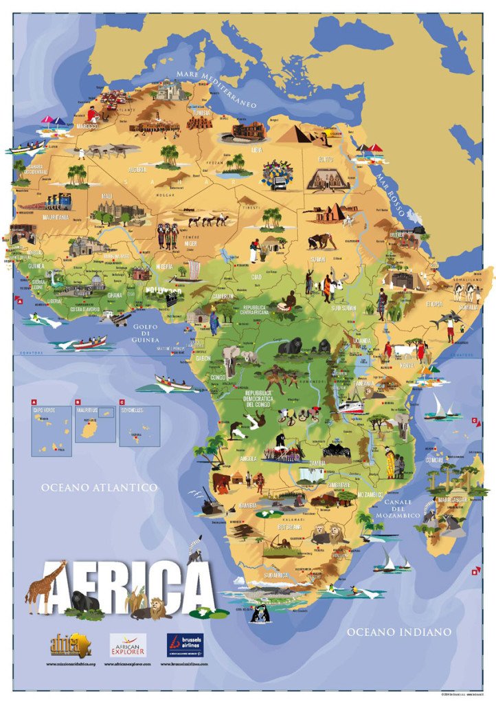 C’è tutto il fascino e la magia del continente nero nella nuovissima mappa realizzata dalla rivista Africa. Un poster colorato e originale, da ammirare ogni giorno, per sognare luoghi lontani e progettare nuovi viaggi. Ma anche una pratica cartina, ripiegabile, da infilare nella propria valigia.
