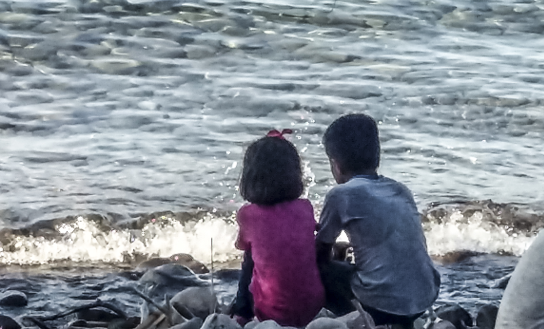A sbarcare sono una trentina di adulti e almeno 12 bambini. Qualcuno piange per scaricare la tensione. Altri rimangono silenziosi e assorti, cercando di capire che cosa succede. Ad un certo punto scorgo due bambini che si sono messi in riva la mare e in silenzio guardano il percorso appena fatto. Stanno l’uno accanto all’altro, come a farsi coraggio per la prova appena passata. Gli adulti hanno le reazioni più svariate: alcuni come i bambini, sciolgono la tensione in lacrime, altri ridono, alcuni si pettinano prima di farsi un selfie da mandare alla famiglia.