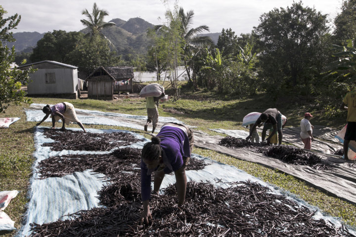 L’essicazione dei fiori di vaniglia nel villaggio di Bemalamatra, Madagascar. La produzione di questo aroma, richiestissimo a livello mondiale, è sfuggita al controllo del governo di Antananarivo e sta facendo la fortuna di pochi intermediari che controllano il mercato e speculano sui prezzi. Mentre i contadini rimangono poveri.