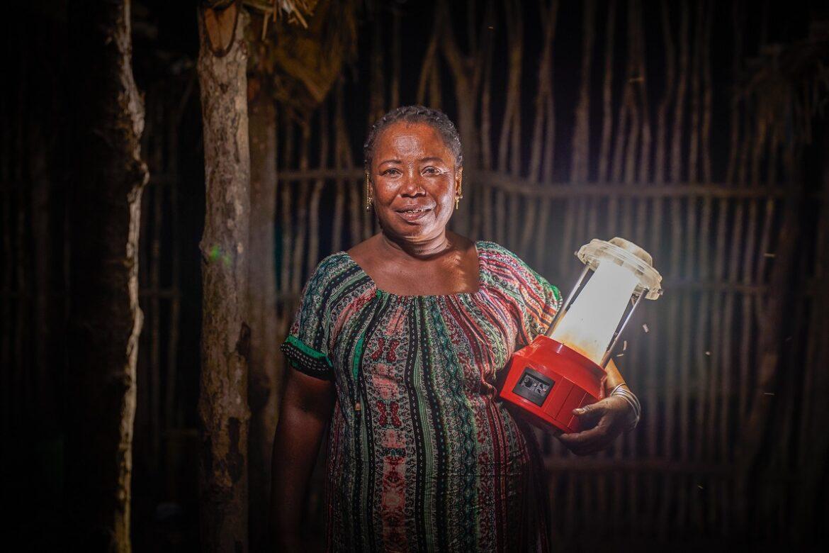 Kingaline, 44 anni, con una lampada solare ad Ambakivao, un villaggio immerso tra le mangrovie della regione costiera occidentale del Madagascar. – Foto di Justin Jin / Panos Pictures