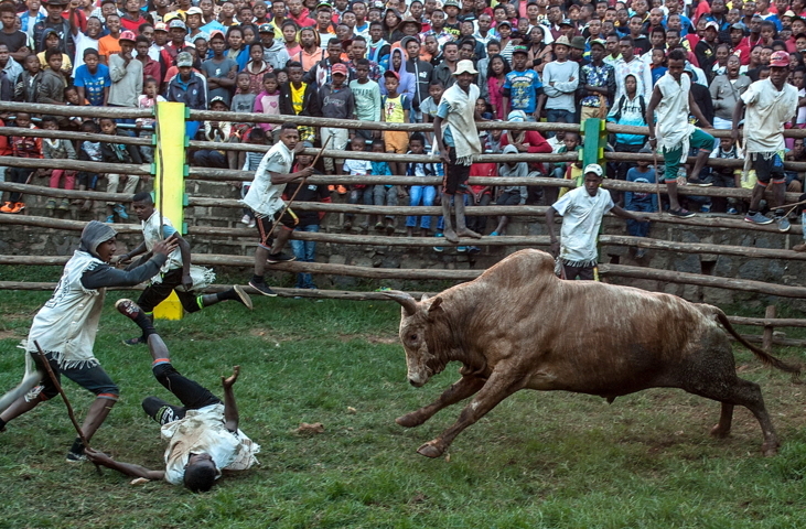 il rodeo americano e la tauromachia spagnola, ma a differenza di quest’ultima non prevede l’uccisione né il ferimento degli animali. Perché lo zebù è sacro e celebra il coraggio dei giovani betsileo.