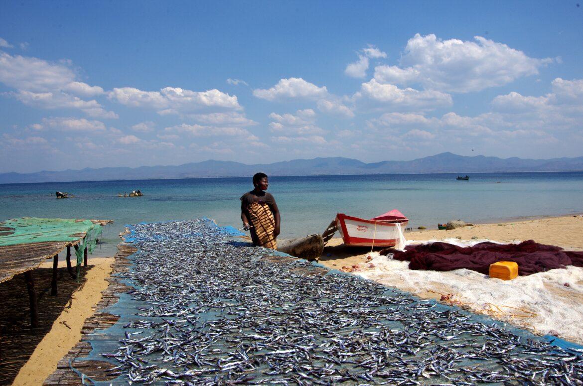 Sembrano uno sciame di stelle cadute in acqua, ma quelle che brillano all’orizzonte sono le lampare appese alla poppa delle barche per la pesca notturna. Un tempo erano lampade a petrolio, oggi sono faretti led di produzione cinese. I loro fasci di luce attirano nelle reti milioni di minuscole sardine. Le chiamano usipa. Sono una benedizione del cielo. La vita qui dipende da questi pesciolini lucenti e gustosi. Si trovano dappertutto nei villaggi. Di giorno vengono stesi a essiccare sulla spiaggia, per poi essere venduti al mercato. All’ora di pranzo finiscono nel piatto con la polenta di mais e i fagioli bolliti. Il loro odore acre permea l’aria dell’isola.