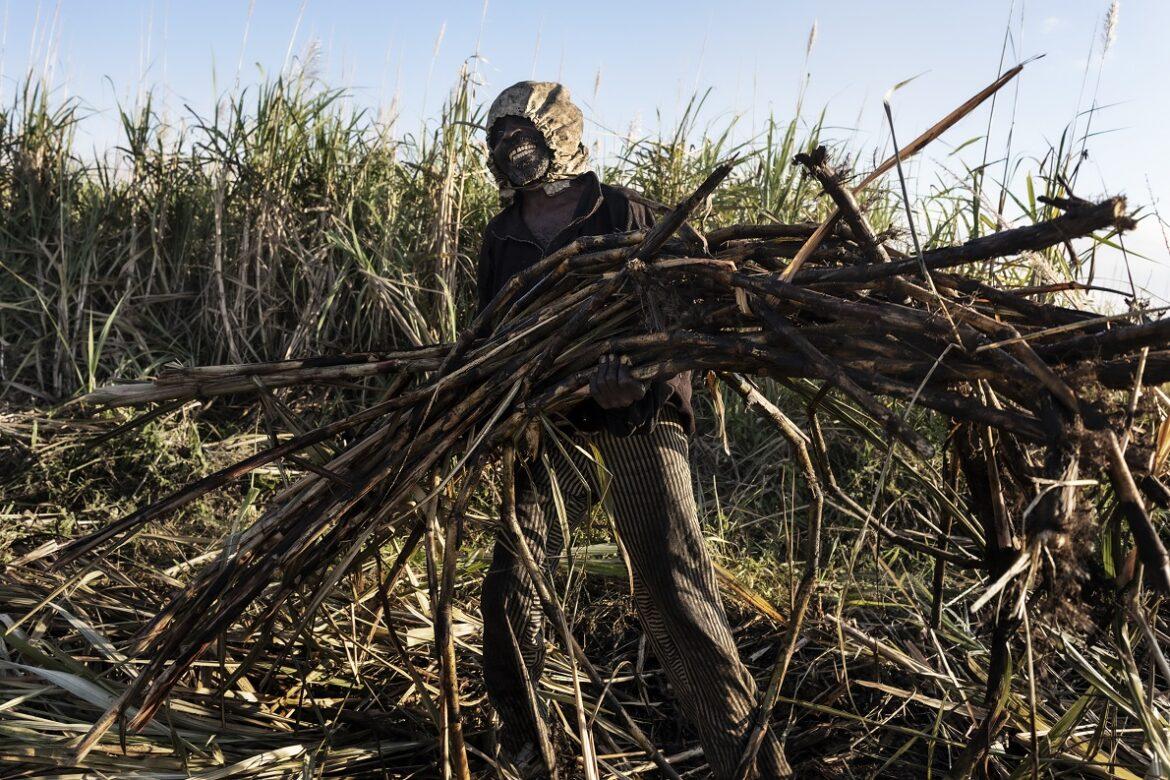 Malawi, operaio agricolo della Società Illovo durante la raccolta di canne da zucchero. Ogni operaio riceve una sola tuta di protezione individuale una volta all’anno, ma tale equipaggiamento non dura abbastanza a lungo. -Foto di Luca Catalano Gonzaga