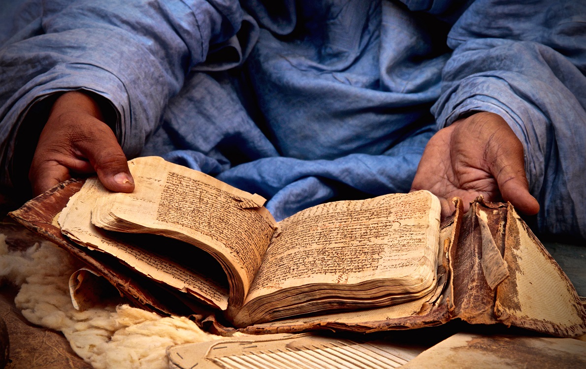 Manoscritto conservato a Chinguetti, la storica città-santuario del Sahara, nota per le sue ricche biblioteche di testi rari e preziosi. – Foto di Irene Fornasiero