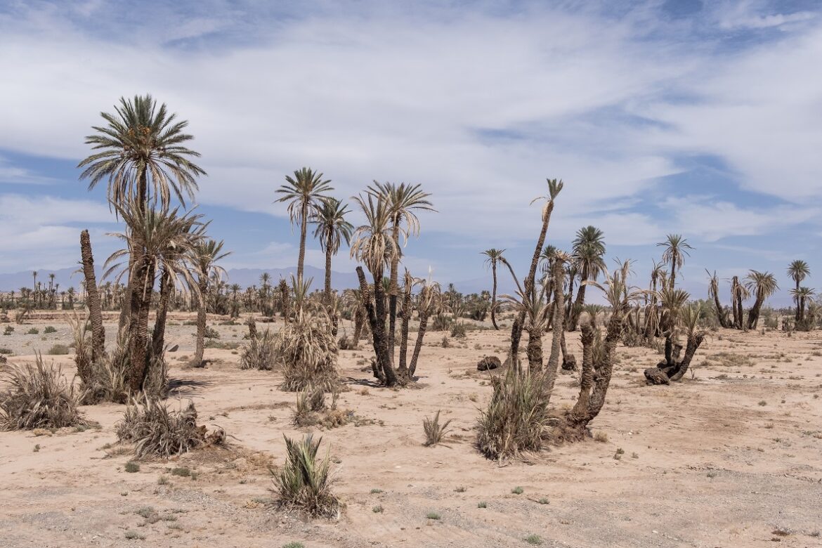 L’impatto del cambiamento climatico è evidente nella Valle del Draa, nel sud-est del Paese, dove l’omonimo fiume – il più lungo del Marocco, con le sorgenti sulle vette dell’Alto Atlante – che un tempo alimentava la regione scorre sempre meno frequentemente. La costruzione di dighe e l’uso intensivo delle risorse idriche per scopi agricoli o industriali hanno ulteriormente aggravato la situazione, compromettendo la sopravvivenza delle oasi. Negli ultimi anni il paesaggio si è trasformato drammaticamente: i ponti sul Draa collegano oggi solo le sponde di un letto arido, mentre vaste aree verdi sono scomparse.