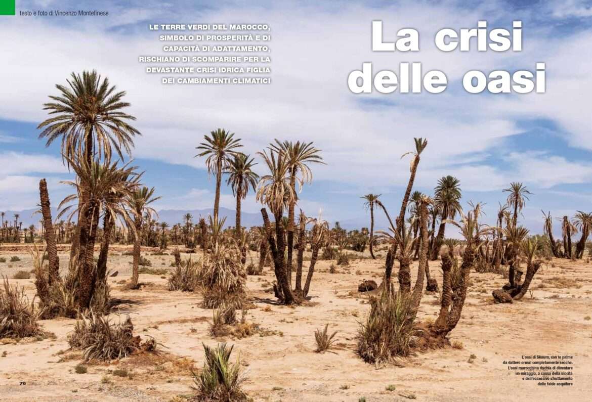 La mutazione climatica minaccia le oasi marocchine, alle prese con una crisi senza precedenti per le ricorrenti siccità e l’inaridimento del territorio. A farne le spese, le popolazioni del deserto, che per secoli hanno tenuto in vita questo prezioso e fragile ecosistema, un tempo simbolo di resistenza e di prosperità.